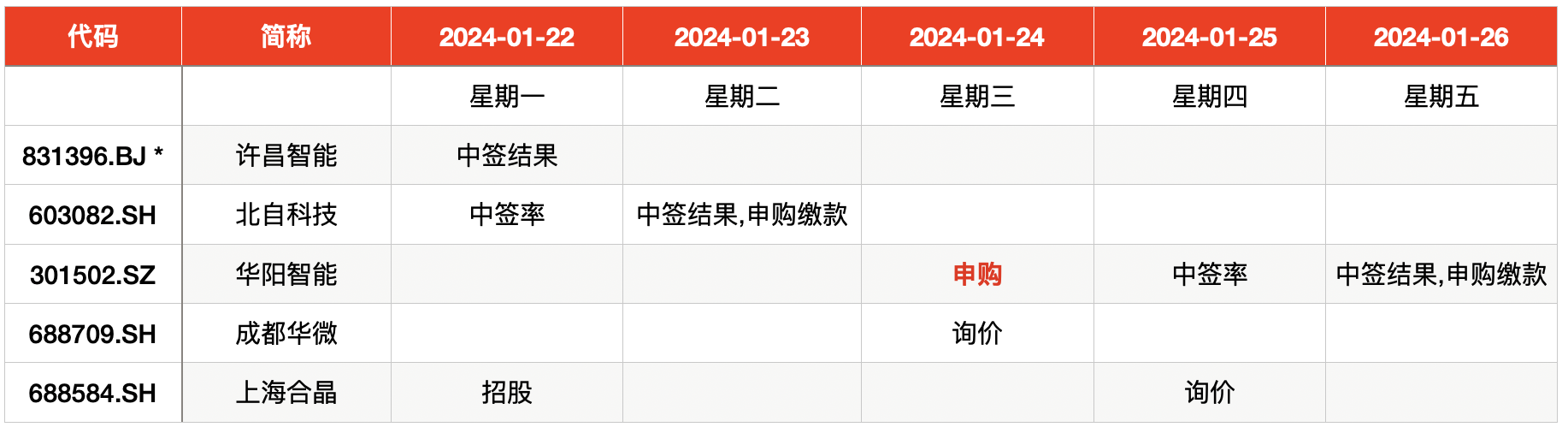 一,本周新股申购