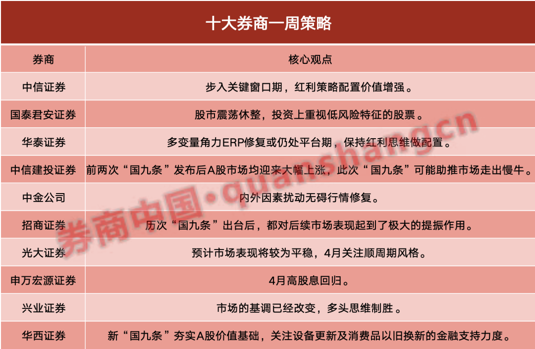 十大券商策略:新“国九条”或助推市场走出慢牛!高股息回归 红利策略配置价值增强