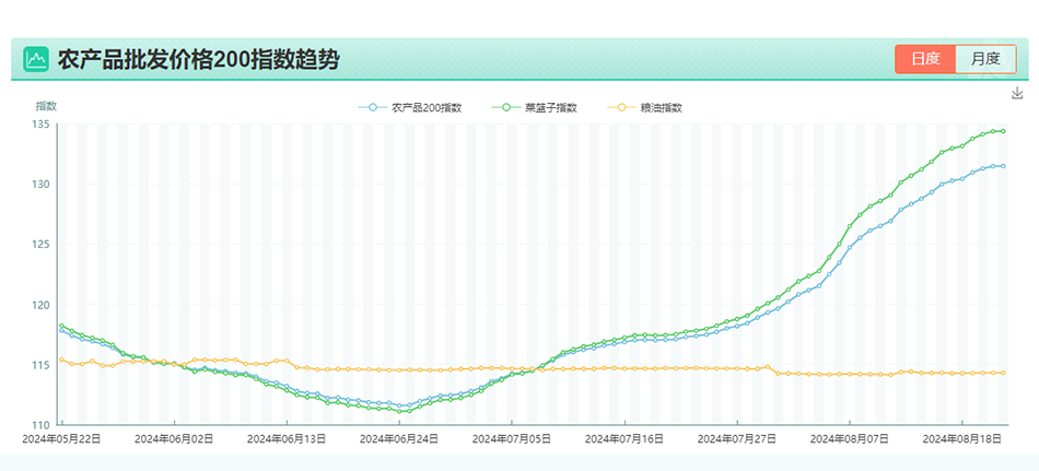 据农业农村部重点监测的28种蔬菜全国批发价格数据显示,6月16日至8月15日,全国蔬菜日度价格从4.27元/kg上升至6.01元/kg,上涨40.7%。