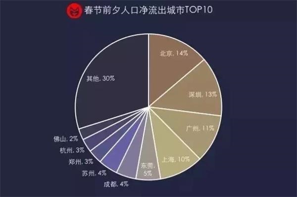 ▲2017年春节前夕人口净流出城市TOP10,图片来自城市数据团