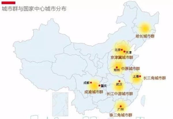 ▲城市群与国家中心城市分布图