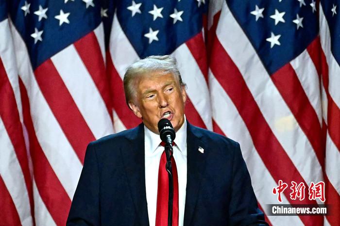 当地时间2024年11月6日凌晨,特朗普在佛罗里达州棕榈滩会议中心发表讲话。