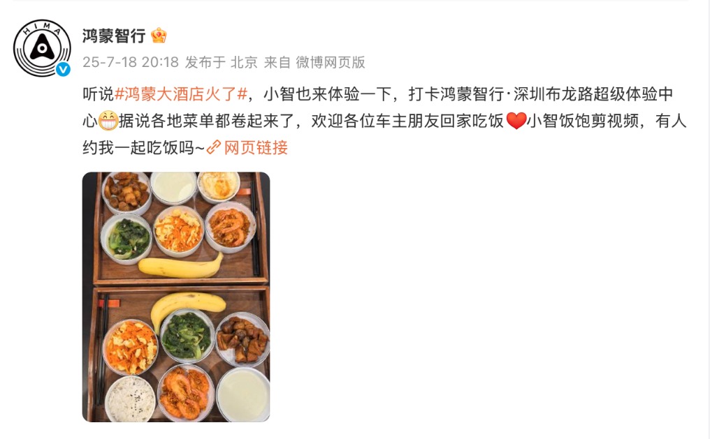 “鸿蒙智行大饭店”被停止宣传?工作人员:免费洗车、餐饮仍提供
