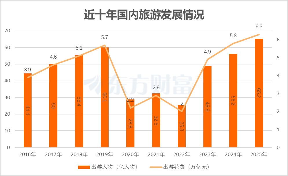 文旅部日前发布的2025年国内居民出游数据情况显示,2025年国内居民出游总人次达65.22亿,同比增长16.2%,出游总花费6.30万亿元,同比增长9.5%。出游人次和消费规模均已显著高于疫情前水平,国内旅游市场恢复态势明确。飞猪、去哪儿等平台数据显示,今年春节旅游市场呈现出客流高峰提前、品质消费与文化消费双凸显的鲜明特征,进一步印证文旅消费的韧性。