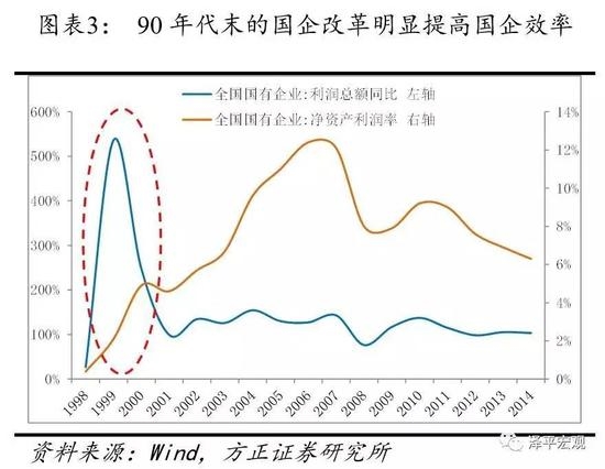 一,混改可有效提升国企绩效。社会资产引入到国企后,将改善资本结构,改进公司治理,明确效率导向,提升国企经营绩效,90年代末的国企改革,通过“抓大放小”,国企效率提升明显,国企利润增速和利润率都明显上升;