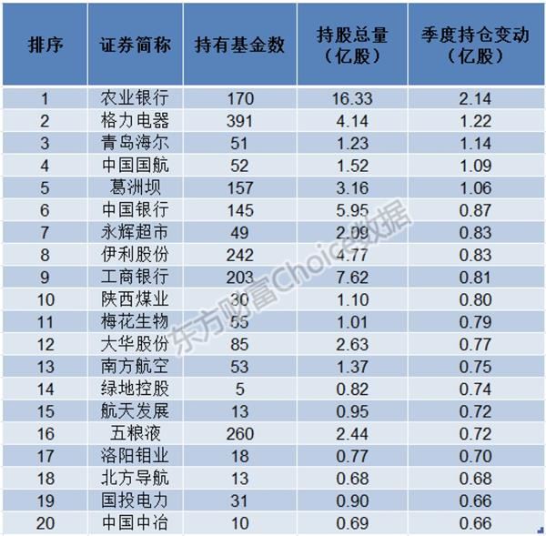 今年一季度被公募基金增持最多的个股为农业银行,170只公募基金合计增持了2.14亿股。从基金增持最多的前20只个股来看,家电、航空等板块个股是公募基金一季度增持的主要对象。