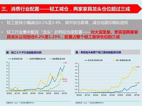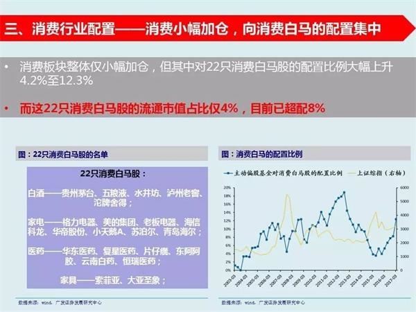 4、对22只消费白马股出现了大幅加仓,抱团特征明显——我们筛选出22只消费白马股,这22只股票的流通市值占全市场比重只有4%,但是基金对他们的配置比例已从8.1%上升至12.3%,抱团特征明显。