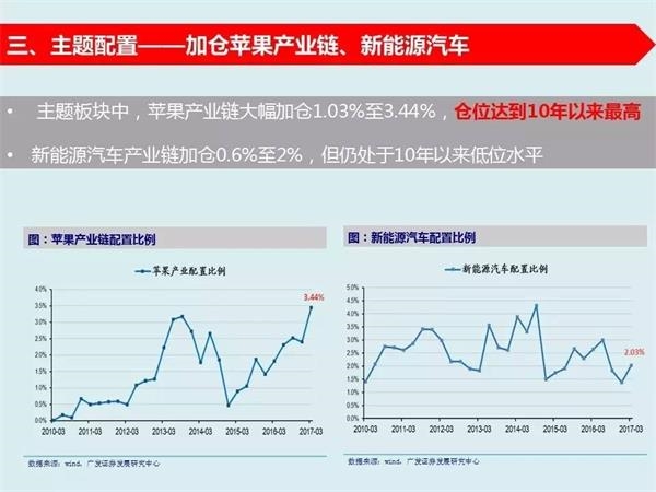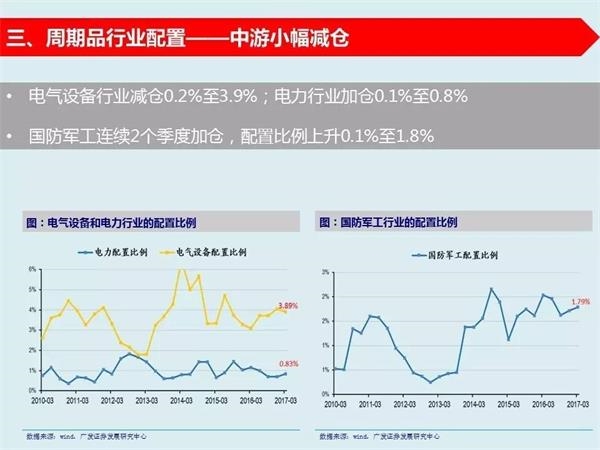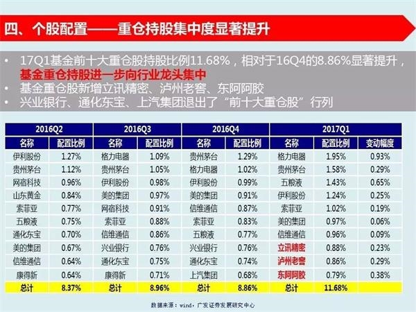 8、基金十大重仓股集中于消费和电子——基金一季报配置比例最高的十家公司:格力电器、贵州茅台、五粮液、伊利股份、索菲亚、美的集团、信维通信、立讯精密、泸州老窖、东阿阿胶。