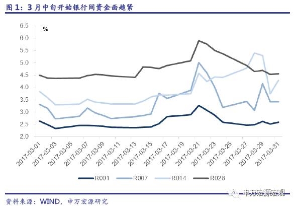 今年3月中旬开始,银行间流动性显著趋紧,短期资金价格大幅波动。其中,3月15日至21日,银行间7天回购利率从2.93%快速攀升208个BP至5.01%,创下近三年新高。隔夜、14天和28天等其他期限回购利率,以及银行同业拆借和交易所质押回购等其他短期资金价格也都出现明显上行。资金面极度紧张导致银行间市场部分机构甚至出现违约。3月下旬后,资金压力有所缓解,截至月底R007回落至3.42%,但仍显著高于今年前两个月价格中枢。