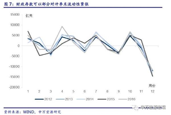 2016年之前,流动性呈季节性波动的主要原因在于三个方面。第一,银行存贷比考核。第二,存款准备金时点法考核。第三,节假日现金需求增加。此外,我国财政存款的上缴与投放也具有极强的季节性特征。每季度末月财政存款的投放会对季末流动性紧张将形成对冲,但总体效果有限,主要是因为财政存款的上缴和投放对商业银行准备金的影响并不对称。