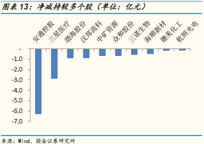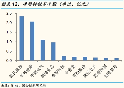 增减持方面,本期二级市场净减持5.88亿(上期净增持18.36亿、上上期净减持5.26亿).本期累计增持10.73亿,累计减持16.60亿;由此累计净减持5.88亿。净增持幅度前五的个股:温氏股份、华邦健康、平高电气、凯迪生态、金智科技;净减持幅度前五的个股:安通控股、三星医疗、渤海股份、汉邦高科、中矿资源。