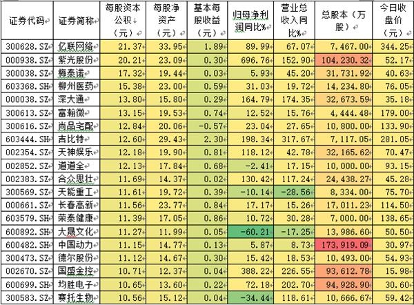 净资产是上市公司股票所含的最基本价值,与股价相比其占比越大也意味着股票更为安全。同时,净资产大意味着公司用于经营的资产就多,也就更有可能获得良好收益。