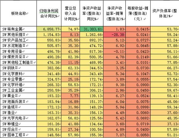 净资产收益率代表了上市公司的盈利能力,这一指标的提高表明公司的盈利能力在增长,即单位资产创造的净利润在增加。不过报告期内很多公司增幅比较大,与其基数低有关,这点需要了解。而基数低有行业原因,也有企业原因,甚至事实清楚有偶然原因。