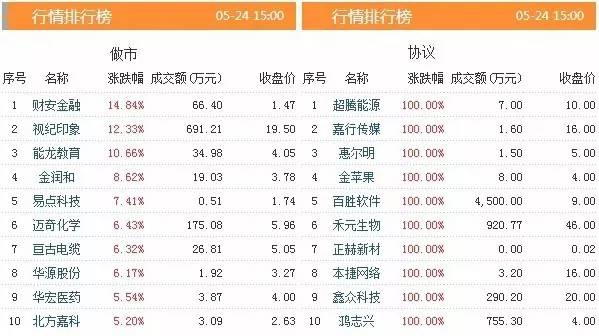 从新三板股票的市场表现来看,今天有11只股票涨幅超过100%,共有46只个股涨幅超过30%。