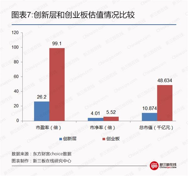 如此看来,企业在创业板上,能获得较其在新三板创新层中更高的价值体现和估值。这也正是此轮创新层调整后,市场急切呼吁相关配套政策推出,除了改善市场流动性外,创新层企业的价值也急需得到体现和市场认可。