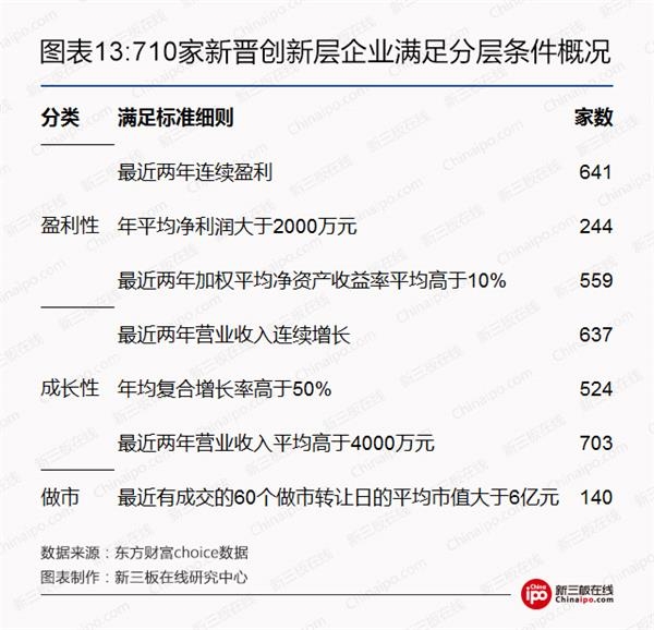 通过对比710家新晋创新层的各项指标分析,新三板在线研究中心发现,盈利性和成长性是其关键。
