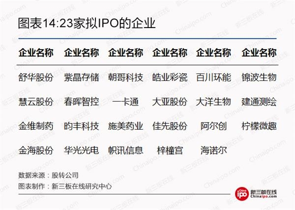不容忽视的是,新三板在线研究中心发现,710家新进创新层的企业中,也有23家企业正在做着“冲层+IPO”的两手准备。一方面,它们已经具备了创新层的资格;另一方面,仅就财务指标而言,这些准备转战A股的公司去年业绩全部符合创业板上市要求。