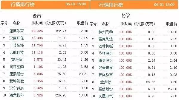 从新三板股票的市场表现来看,今天有10只股票涨幅超过100%,共有60只个股涨幅超过30%。