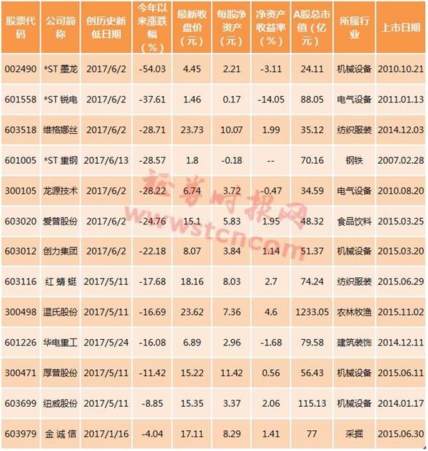 13股创历史新低:除了3只ST 其余都有这个共性