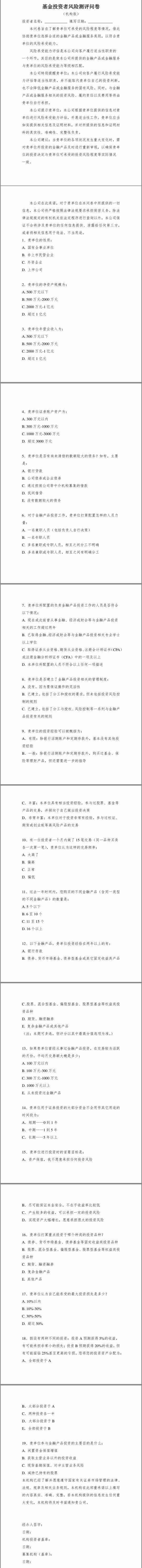 附:基金投资者风险测评问卷(机构版)