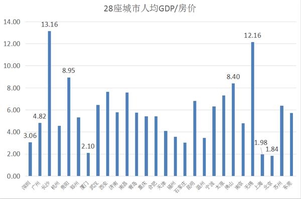 城市性价比=人均GDP/房价