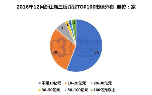 2016年12月浙江新三板企业TOP100市值分布挖贝新三板研究院制图