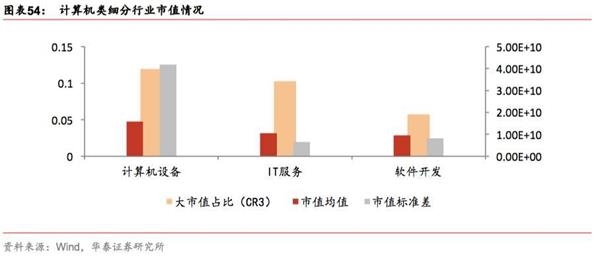 计算机:计算机设备行业流动性溢价相对较低。从市值的角度看,市值均值、市值集中度和标准差最大的均是计算机设备行业。