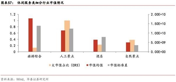 休闲服务:从市值的角度,旅游综合市值均值较大,行业内多为国有大型旅游公司。从发展的角度,旅游综合的利润增速和ROE均值都较大。