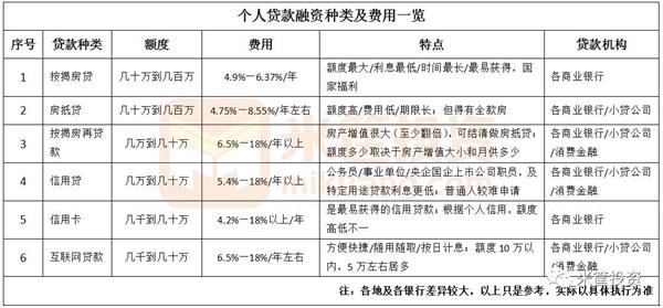 如果融资借贷是现金流的重要构成,那个人贷款的种类和费用如何呢?