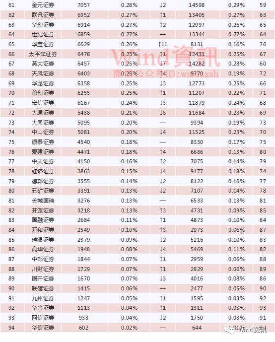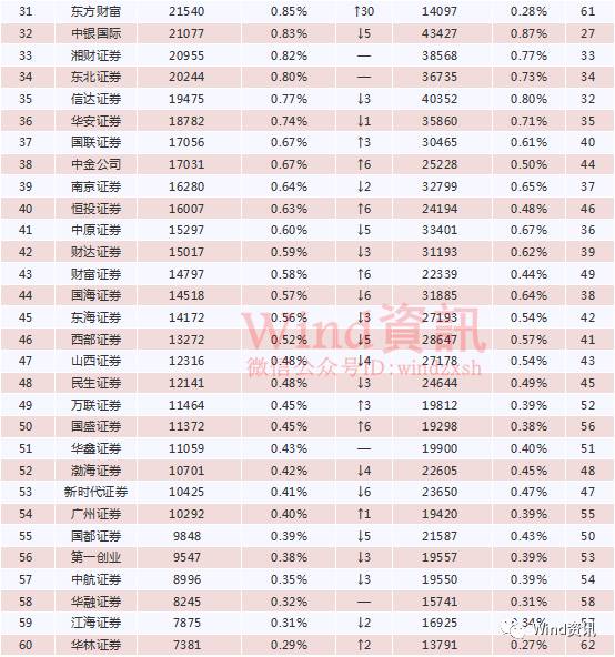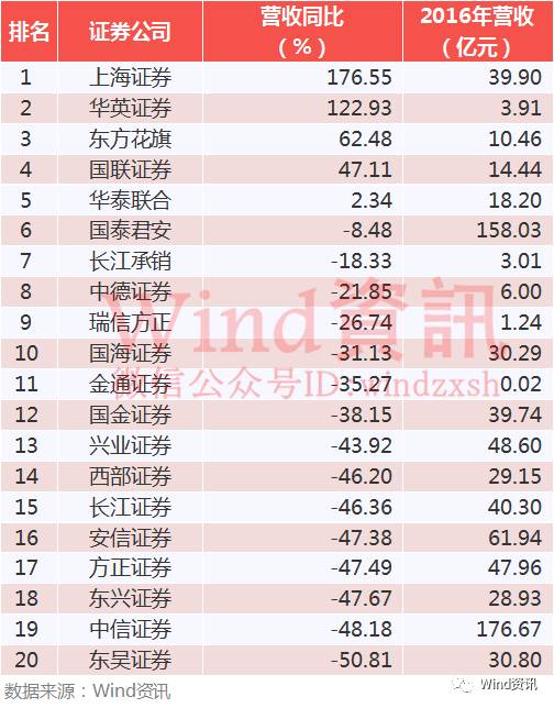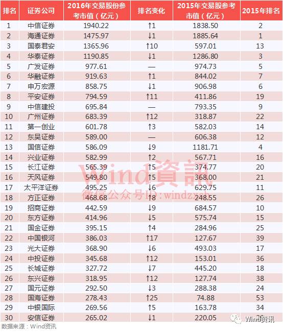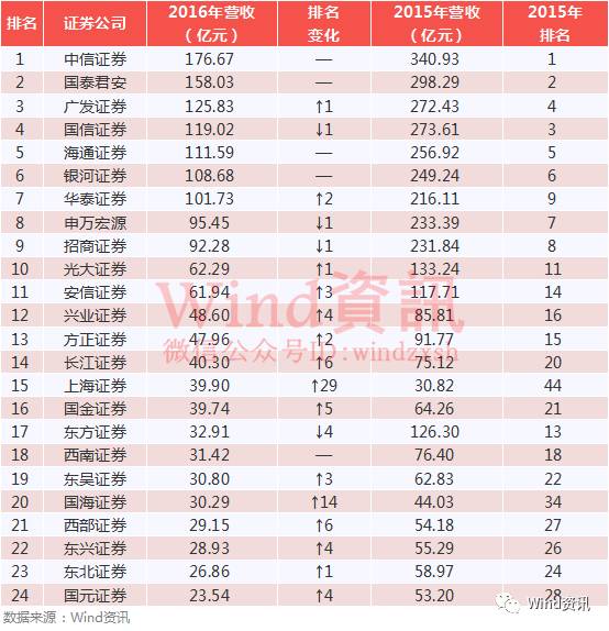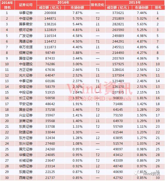 广发证券排名较2015年上升1名至第4位;上海证券升幅最大,由2015年的49名上升了36位至13名。