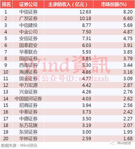 2016年承销收入排名中,中信证券、广发证券位列第一和第二,全年主承销净收入(包括IPO、定增及债券)均超过了10亿元。