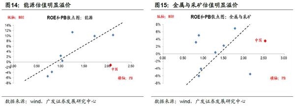 基于申万一、二级行业分类,我们筛选出属于周期品的二级细分行业(一级行业展开成二级行业),并将周期品的估值(PB)和盈利能力(ROE)进行匹配。
