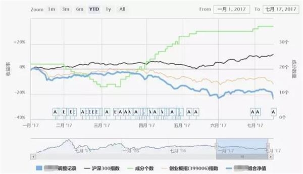 根据“看研报”平台的数据引擎,搜索了他的组合收益图: