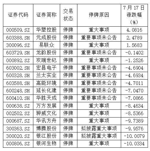 实际上,7月17日晚上,就已有多家上市公司申请停牌,原因大多为筹划重大事项。
