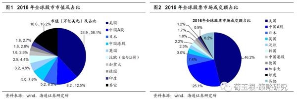 A股已经处于国际化进程中,按市值算39%中资企业在海外上市。A股是全球第二大资本市场,市值在全球占比12.5%,成交额全球占比25%,仅次于美国的38%和46%。并且大量中资企业已经在港股、美股上市。全部已上市中资企业中,从数量分布结构看,A股、港股、美股分别占74%、22%、4%,但从市值分布结构看,A股、港股、美股分别占61%、29%、10%,港股、美股中概股占所有中资股市值比例的39%,已经有多中国企业在海外上市。在2015年11月,MSCI就已经将一些在美国上市的中国概念股纳入MSCI全球基准指数,其中包括阿里巴巴和百度、京东、腾讯等。从这些角度来看,中国的资本市场已经处于国际化进程中。