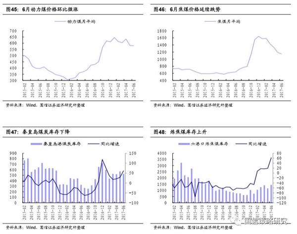 6月焦煤价格继续下跌,动力煤微涨。动力煤6月期货平均结算价环比增速0.57%,焦煤6月期货平均结算价环比增速-7.99%。焦煤价格仍处于下行通道,但6月价格下降幅度放缓。截至6月末秦皇岛港煤炭库存527万吨,较上月下降44万吨,同比增长61.6%。炼焦煤6月末库存1452万吨,较上月增加292万吨,同比增长62%。从整体的同比高增速来看,煤炭仍处于补库存周期。