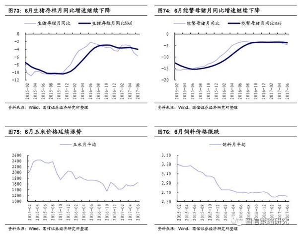 肉制品价格大幅下降,未来补栏需求可能会拉升肉价。6月肉制品价格环比增速下降。鸡肉价格6月份环比增速-11.5%,低于4月-2.1% 的环比增速。猪肉价格6月环比增速-13.7%,低于4月-4.4%的环比增速。6月生猪存栏月同比增速为-5.7%,能繁母猪月同比增速为-4.6%,同比增速均处于不断下滑趋势。饲料端玉米价格不断上行,6月环比增速6%,饲料价格6月环比增速为2.61.