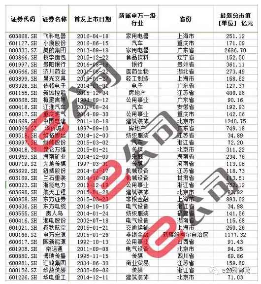市值方面,最新市值仅有美的集团、中国电建、申万宏源等超过1000亿元。