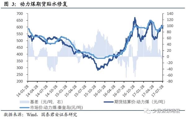 期货贴水修复与周期股表现同步。近期周期股表现强势,源于经济和盈利的悲观修复,其中盈利的悲观修复与周期品价格关系密切。本轮价格上涨中,螺纹钢、焦煤、动力煤期货价格上涨幅度超过了现货价格,期货贴水大幅修复,截止7月28日,螺纹钢基差从6月1日的高点673元/吨下降至215元/吨;焦煤基差从5月12日的高点499.5元/吨下降至最新的118.5元/吨,动力煤基差从5月5日的最高点104元/吨下降至最新的19元/吨。