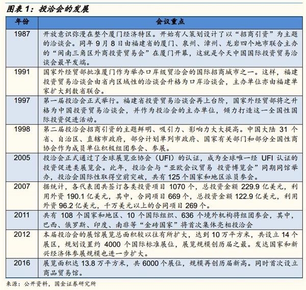 中国国际投资贸易洽谈会(简称“投洽会”)每年在厦门举办,以“引进来”和“走出去”为主题,是中国目前唯一以促进双向投资为目的的国际投资促进活动。投洽会主要内容包括:投资和贸易展览、国际投资论坛及系列投资热点问题研讨会和以项目对接会为载体的投资洽谈,不仅对我国国内各个省市、自治区以及香港澳门特别行政区的投资政策、项目产品等进行介绍展示,同时投洽会发展到现在也融合进数十个国家和地区的投资促进机构纷纷来厦门参展举办说明会、推介会,凸显了投洽会以“突出全国性和国际性,突出投资洽谈和投资政策宣传,突出国家区域经济协调发展,突出对台经贸交流”为主要特色,与金砖会议所提倡的“共同建设开放世界、共同勾画发展愿景、共同应对全球挑战、共同深化伙伴关系”有着异曲同工之妙。
