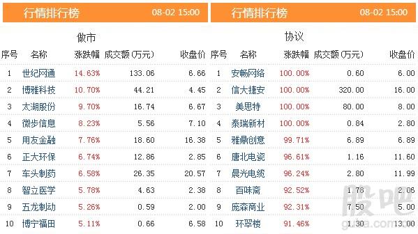 昨日共有838只股票发生交易,成交金额6.16亿元,做市转让成交3.13亿元,协议转让成交3.02亿元,成交数量12709.28万股。