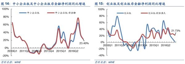 2017Q2主板增速预增,主板非金融增速预减,创业板和中小企业板增速预减,金融板块利润回升或是关键。截止目前,我们预计2017年中报预告全部A股中净利润同比增长21.86%,2017Q2为20.48%,环比微幅下滑;剔除金融后2017H1和2017Q2净利润同比增速分别为40.99%和34.01%。其中,上半年金融股业绩持续好转成为A股盈利的重要支撑。分板块来看,预计2017Q2主板净利润增速升至26.32%,主板非金融增速降至40.20%;中小板净利润增速降至27.32%,中小板非金融增速降至24.04%;创业板净利润增速降至2.08%低位,剔除温氏股份后回升至21.73%,较Q1仍是下滑。简而言之,创业板和中小板相较2016年同比增速均出现一定回调,主要原因是2016年的高基数与成长股盈利的负面预期;主板将成为A股盈利的最大亮点,增长主要来源是金融机构的资产负债表修复带动利润回升,预计2017年主板净利润同比增速20.42%,明显高于2016年。