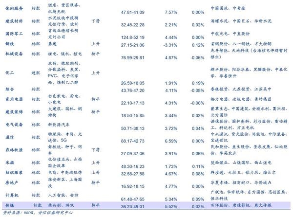 二级行业金属非金属新材料(29.12%)、稀有金属(28.48%)、其他采掘Ⅱ(20.05%)、工业金属(16.30%)、钢铁Ⅱ(16.23%)涨幅居前。其他休闲服务Ⅱ(-20.66%)、环保工程及服务Ⅱ(-9.99%)、农业综合Ⅱ(-9.13%)、医疗器械Ⅱ(-8.00%)、仪器仪表Ⅱ(-7.85%)涨幅居后。