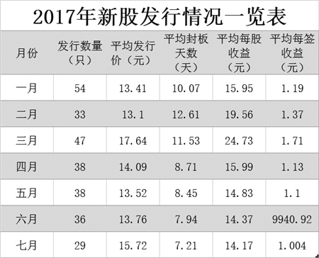 2017年新股发行情况一览表
