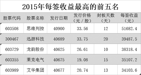 2015年每签收益最高的前五名