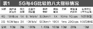 为了满足三大应用场景需求,ITU和IMT-2020工作组对5G网络的标志性能力指标给出了具体要求,相较于现有网络(4G)在八大能力指标方面有大幅提升。详情见表1.