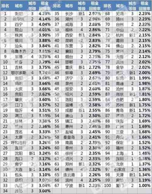 一般来说,租金回报率在5%以上的属于适合投资的楼市。但从上表中不难看出,即便是排名第一的衡阳,租金回报率也只有4.23%。