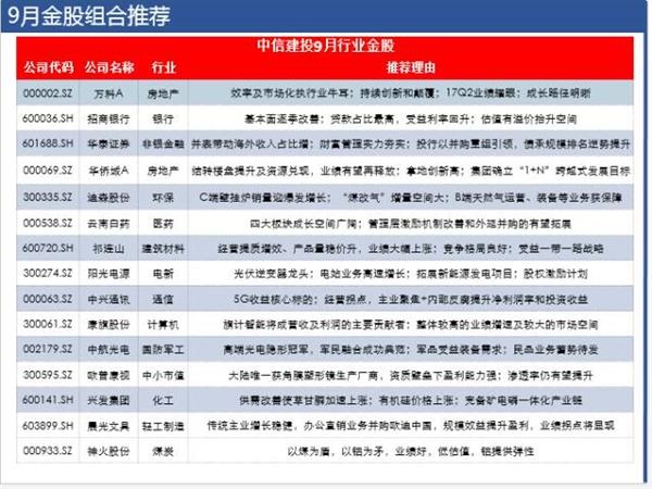 9月金股组合:万科A、招商银行、华泰证券、华侨城A、兴发集团、迪森股份、云南白药、祁连山、神火股份、阳光电源、中兴通讯、康旗股份、晨光文具、中航光电、欧普康视。