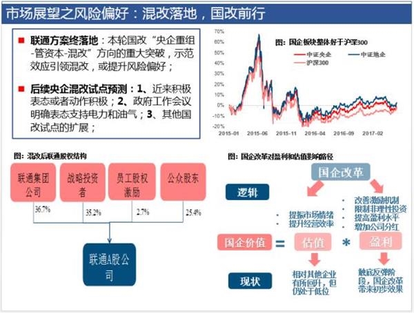 混改落地和国企利润改善,金融风险有所缓释,市场风险偏好或受提振,流动性尚无明显新扰动,但经济运行韧性有所减弱,大盘亦行至阶段高位,市场将从向上拓展转向震荡市.