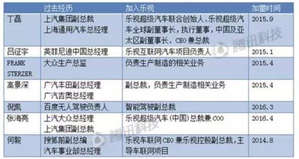 据悉,除了美国内华达州的法拉第未来,乐视在国内的浙江德清投资建设超级汽车工厂,号称投资200亿元;此外,招来太多汽车人才和大量新增雇员导致其在成本上也需要投入不少资金。贾跃亭目前已在中国、美国、欧洲等地进行全产业价值链布局,在美员工超过 1000 人。而据腾讯科技统计,乐视超级汽车目前至少已经拥有如下高管: